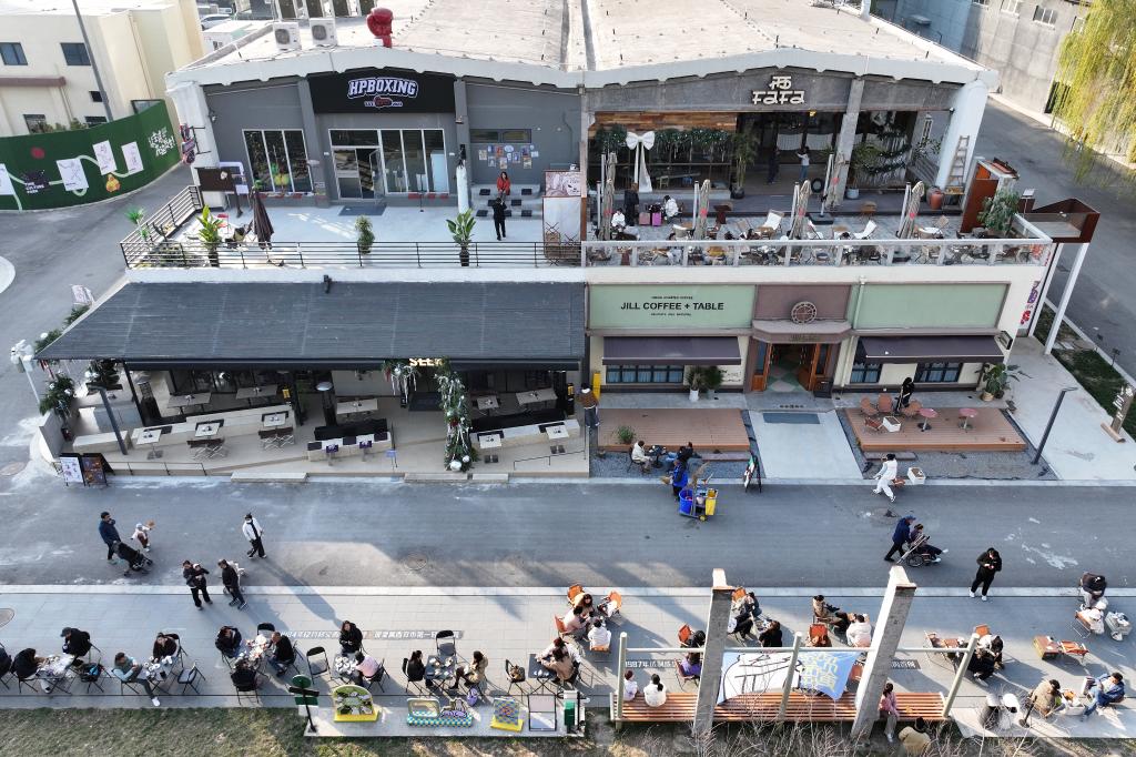 12月4日,游人在西安时光文化公园消费休闲(无人机照片)。这座公园是由西安国营第一钟表机械厂旧厂区改建而来的。
