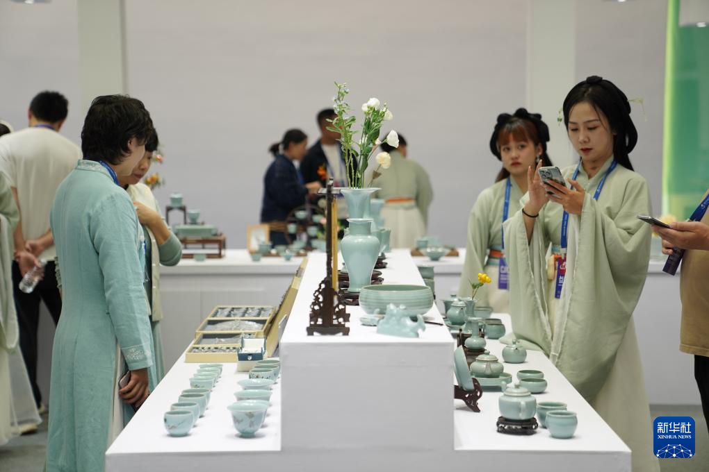 10月18日,人们在瓷博会现场欣赏展品《瓷造大观园》。