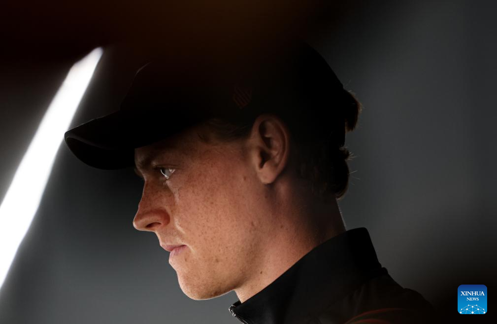 This file photo taken on May 10, 2025 shows Jannik Sinner reacting before the men's singles round of 64 match between Jannik Sinner of Italy and Mariano Navone of Argentina at the ATP Italian Open in Rome, Italy. (Xinhua/Li Jing)