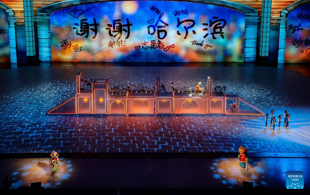 This file photo taken on Feb. 14, 2025 shows artists performing during the closing ceremony of the 9th Asian Winter Games in Harbin, northeast China's Heilongjiang Province. (Xinhua/Chen Yichen)