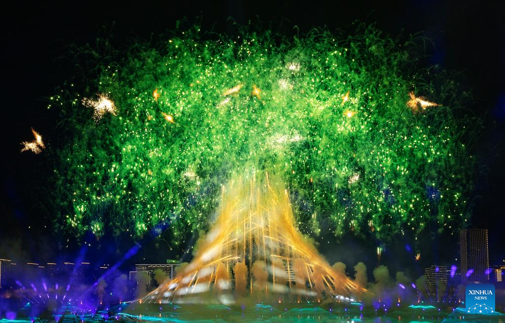 This file photo taken on Aug. 7, 2025 shows fireworks exploding during the opening ceremony of the World Games 2025 in Chengdu, southwest China's Sichuan Province. (Xinhua/Chen Yichen)
