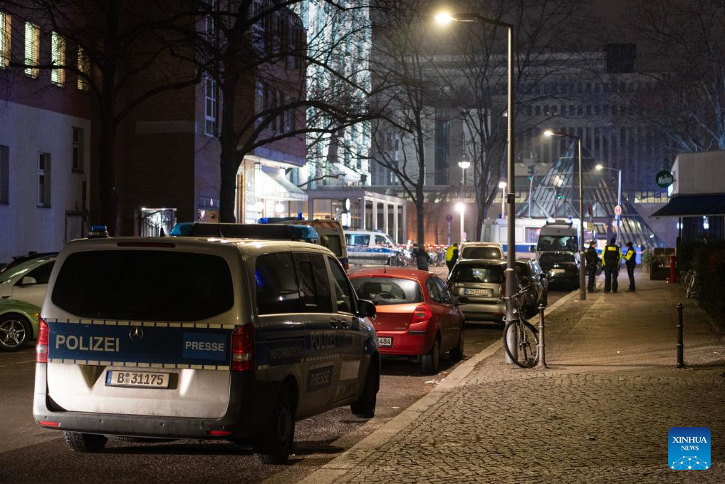 Police officers work at the scene of a shooting in Berlin, Germany, on Jan. 25, 2026. (Xinhua/Zhang Haofu)
