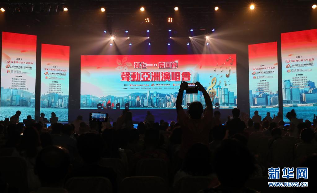 7月3日拍攝的“賀七一·慶回歸”聲動(dòng)亞洲演唱會(huì)現(xiàn)場(chǎng)。新華社記者 吳曉初 攝