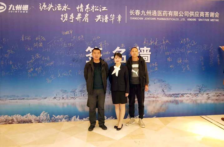 公司重點(diǎn)客戶長春九州通醫(yī)藥有限公司在公司總部舉行了供應(yīng)商答謝會,公司營銷中心銷售一部總監(jiān)單力軍攜當(dāng)?shù)貥I(yè)務(wù)經(jīng)理參加了此次會議,公司品種在此次會議中較好地完成了促銷任務(wù)。