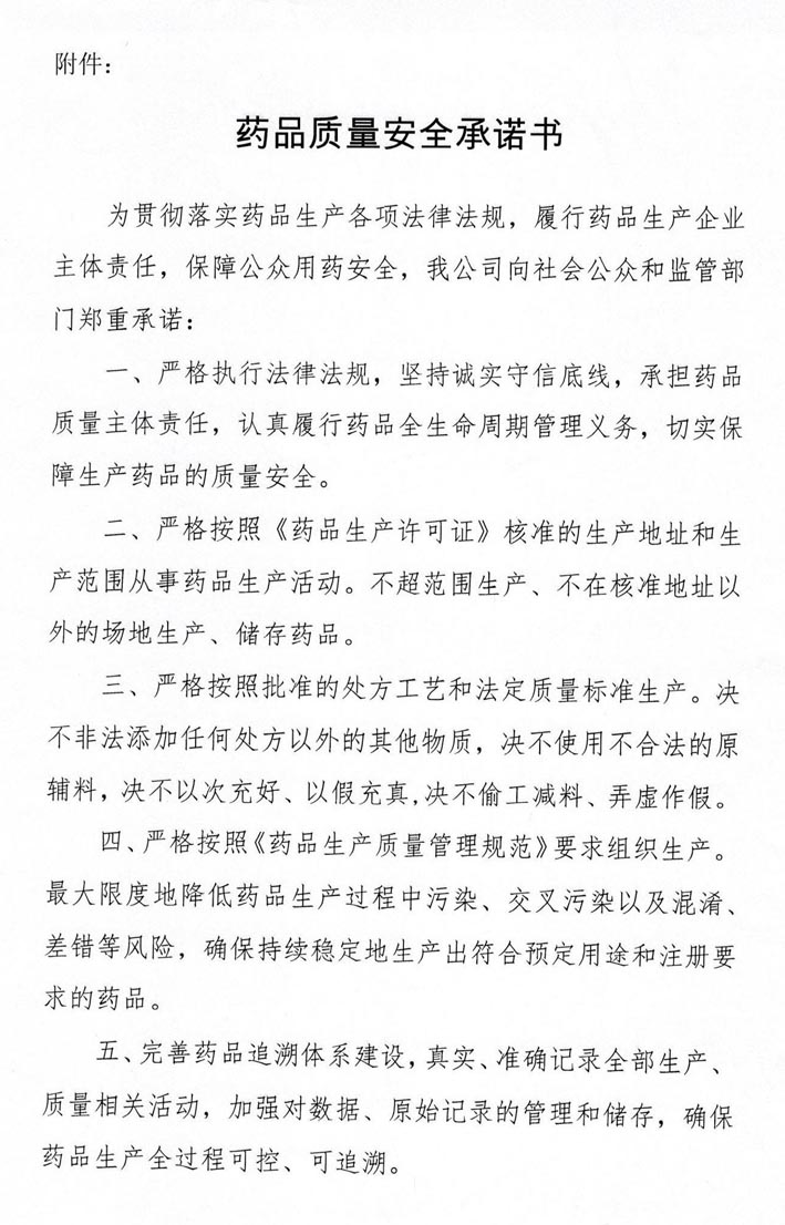藥品質(zhì)量安全承諾書(shū)