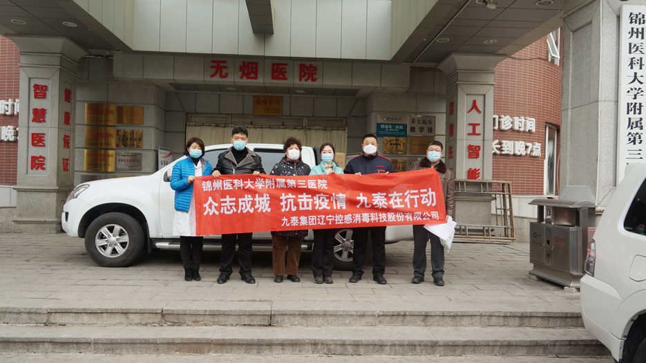 2月11日、25日,錦州九泰集團(tuán)積極踐行企業(yè)社會責(zé)任,向錦州醫(yī)科大學(xué)附屬一院和附屬三院開展愛心捐贈活動,送去75%乙醇消毒液,有效緩解了新型冠狀病毒疫情防控物資匱乏壓力,發(fā)揮了積極的作用。對打贏新型冠狀病毒疫情阻擊戰(zhàn)提供了物資保障。