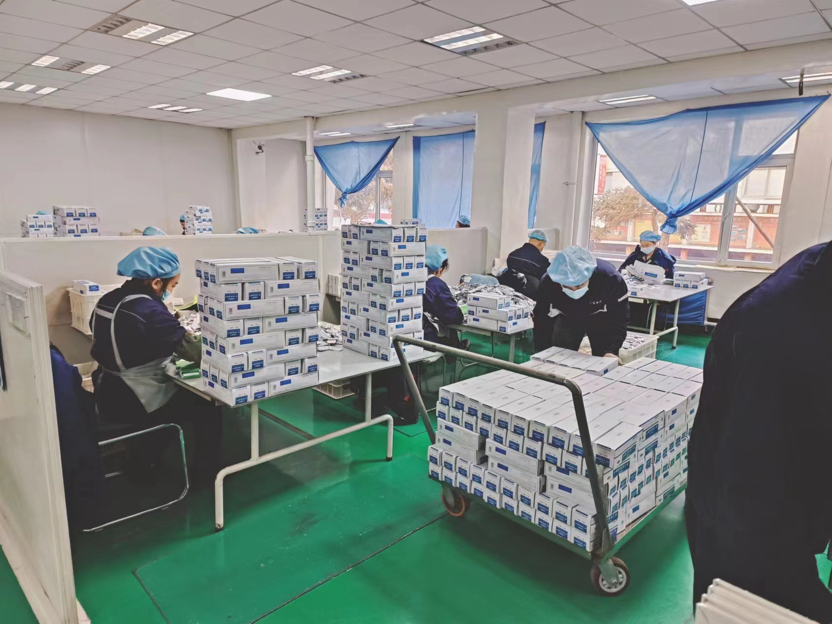 包裝班的一線工人都擁有極佳的眼力、極快的反應(yīng)力、極敏捷的手速……那粒粒飽滿的鋁塑板,在傳送帶跳動(dòng)的樣子不正是疫情結(jié)束的希望影子?!