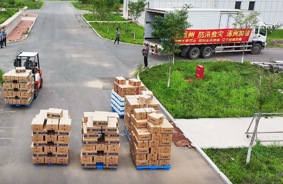 8月5日到7日,錦州九泰藥業(yè)及集團下屬錦州本天藥業(yè)、遼寧控感消毒科技公司三家企業(yè)上下聯(lián)動,全力組織員工從三家企業(yè)庫房緊急調(diào)配包括復方氯己定撒粉、復方紫荊皮水楊酸溶液、硫酸慶大霉素碳酸鉍膠囊、蒲地藍消炎片、對乙酰氨基酚片、氨咖黃敏膠囊、乙醇消毒液、84消毒液、碘伏消毒液及消毒片等價值300多萬元的急需藥品及消毒用品。其中消毒消殺用品因庫存不足,企業(yè)臨時決定增加生產(chǎn)計劃,員工加班加點24小時連續(xù)生產(chǎn),爭分奪秒,將1400余件的救援藥品馳援涿州、五常、舒蘭等地,用于災區(qū)救援,保障受災群眾人身安全,助力災后重建及復工復產(chǎn)等工作。