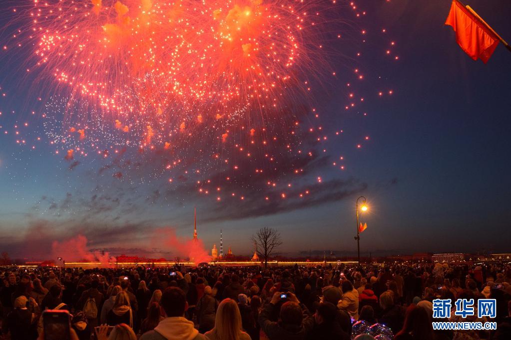 圣彼得堡燃放煙花紀(jì)念衛(wèi)國戰(zhàn)爭勝利76周年