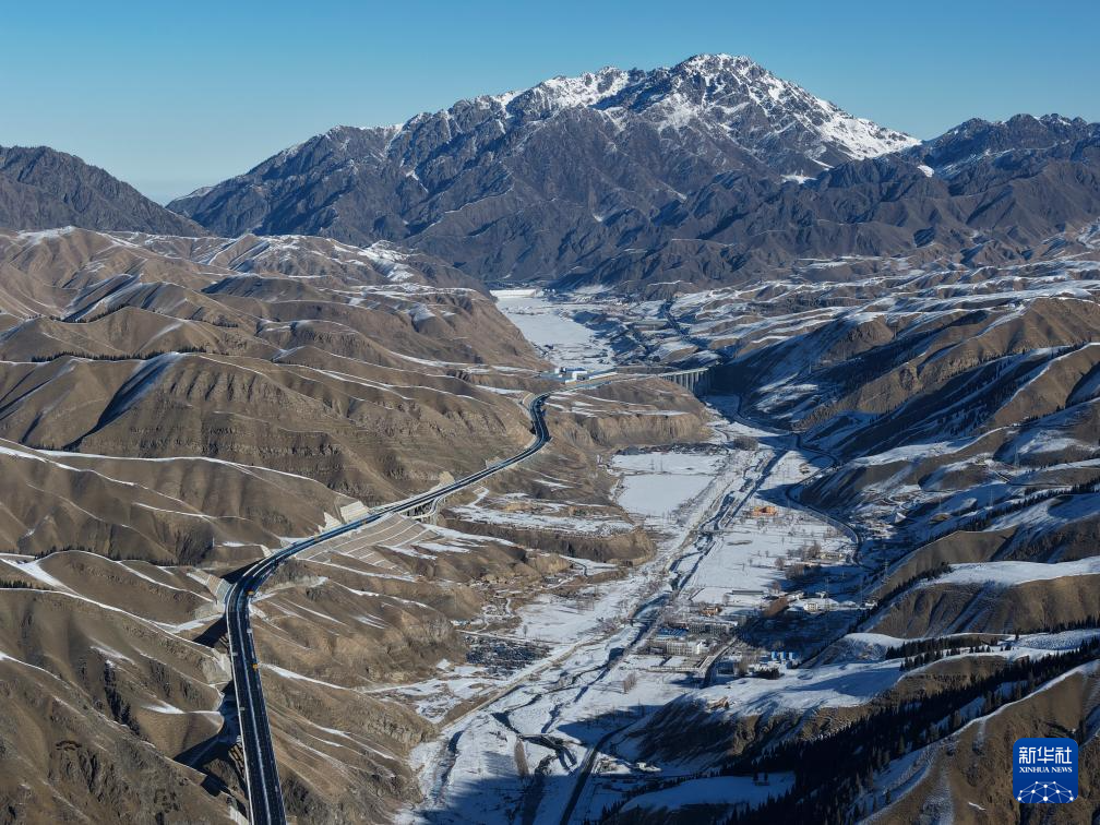 新疆乌尉高速公路蜿蜒在天山中(12月23日摄,无人机照片)。