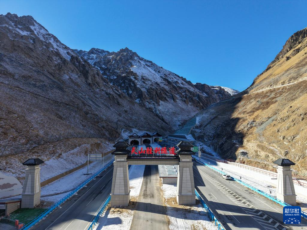 这是新疆乌尉高速公路天山胜利隧道出口端(2025年12月23日摄,无人机照片)。