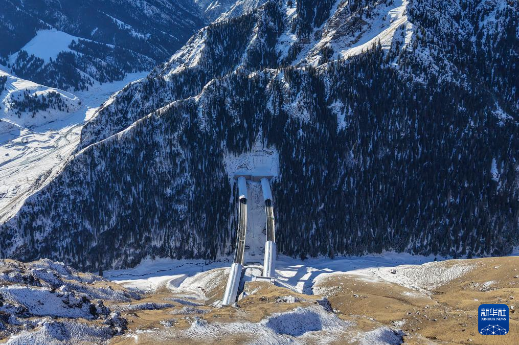 这是新疆乌尉高速公路后峡隧道(左)与相连的哈熊沟隧道(12月23日摄,无人机照片)。