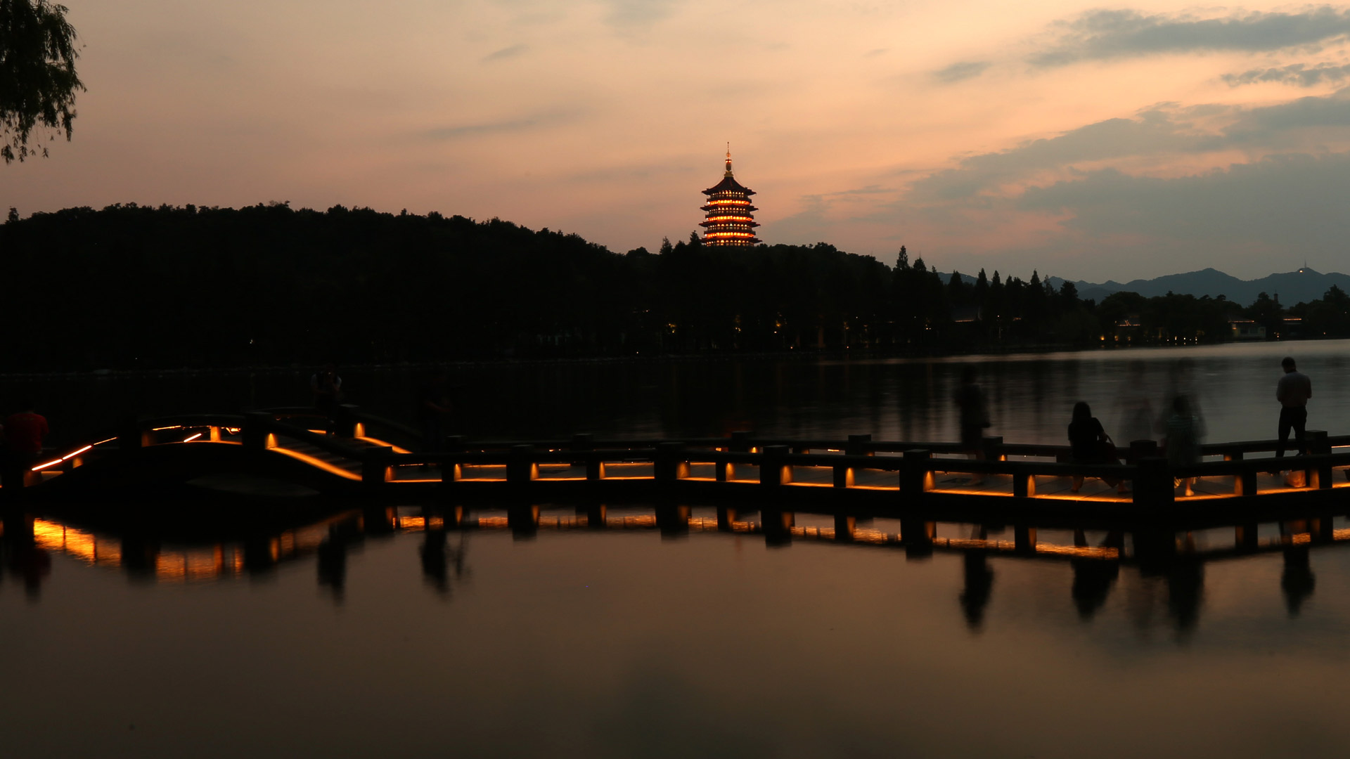 杭州西湖夜景(8月31日攝)。新華社記者殷剛攝