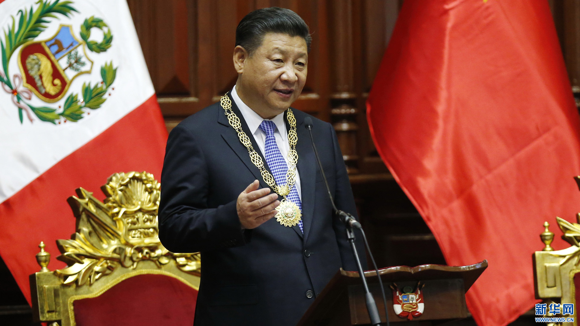 11月21日,國(guó)家主席習(xí)近平在秘魯國(guó)會(huì)發(fā)表題為《同舟共濟(jì)、揚(yáng)帆遠(yuǎn)航,共創(chuàng)中拉關(guān)系美好未來(lái)》的重要演講。 新華社記者 鞠鵬 攝2016-11-22