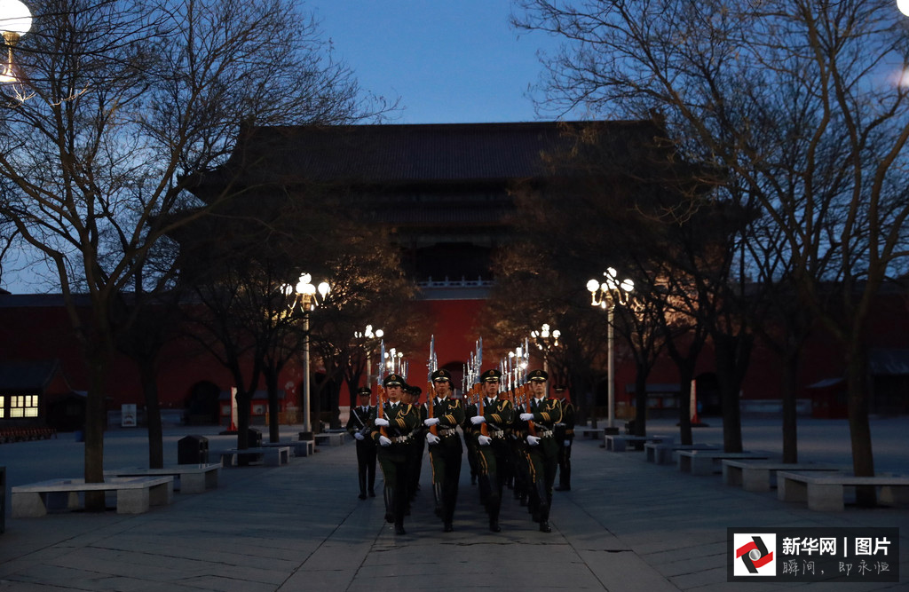 2017年3月5日,第十二屆全國人民代表大會第五次會議在人民大會堂開幕。凌晨4點的長安街,夜色還未褪去,位于故宮午門前一側的一座武警營區(qū)內(nèi),卻已是燈火通明。一群武警戰(zhàn)士穿起禮兵服、握緊鋼槍開始訓練。晨曦微露,從金水橋到國旗桿下,138步、2分07秒、365天,無論雨雪風霜、嚴寒酷暑,他們都守護著五星紅旗冉冉升起。這支部隊就是武警北京總隊天安門支隊國旗護衛(wèi)隊。