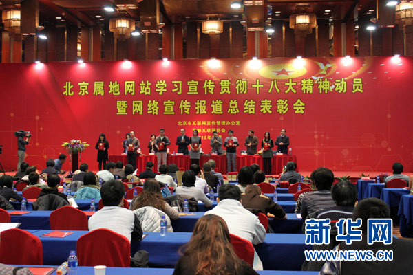 ??? 27日,北京市互聯(lián)網(wǎng)宣傳管理辦公室召開北京屬地網(wǎng)站學習宣傳貫徹黨的十八大精神動員大會暨網(wǎng)絡宣傳報道總結(jié)表彰會。圖為會議現(xiàn)場。新華網(wǎng)記者 陳元攝