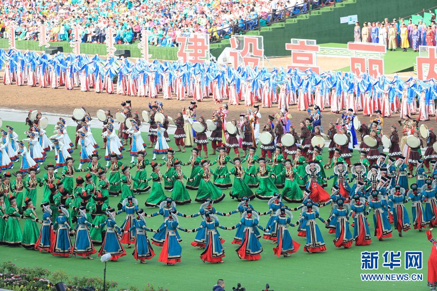 8月8日,內(nèi)蒙古自治區(qū)成立70周年慶祝大會在呼和塔拉內(nèi)蒙古少數(shù)民族群眾文化體育運動中心舉行。圖為群眾行進表演。新華網(wǎng)記者 陳杰 攝