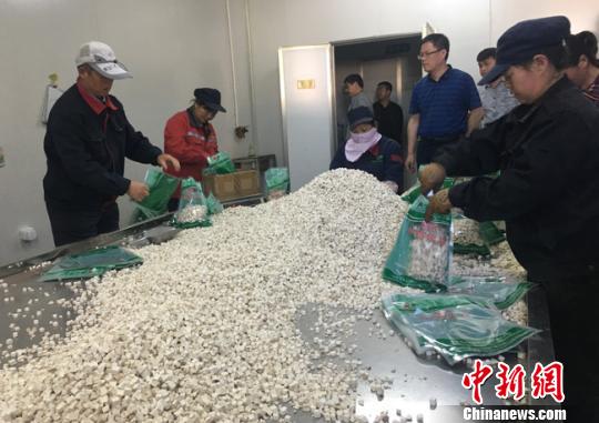 清水縣白沙鄉(xiāng)溫泉村的生物科技有限責(zé)任公司為當(dāng)?shù)剞r(nóng)民免費(fèi)提供技術(shù)指導(dǎo)和種子化肥,既解決銷售渠道問題,又降低種植風(fēng)險(xiǎn),公司安置貧困戶就業(yè)近20人。圖為當(dāng)?shù)刎毨粽诎b中藥材?!堟?攝