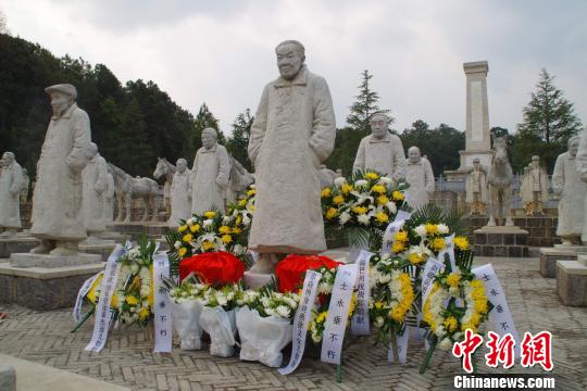 中國遠征軍老兵達成遺愿夫婦骨灰安葬抗戰(zhàn)遺址。圖為徐中平雕塑。陳靜 攝
