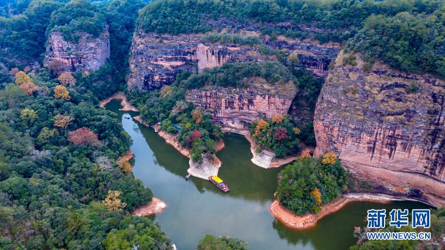 這是12月9日拍攝的福建省三明市泰寧縣大金湖景區(qū)的水上丹霞景觀(無人機照片)。新華社記者 姜克紅 攝