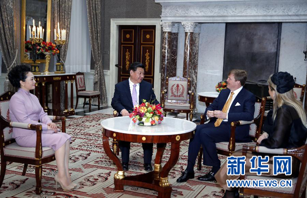 3月22日,國家主席習(xí)近平在阿姆斯特丹會見荷蘭國王威廉-亞歷山大。當(dāng)習(xí)近平和夫人彭麗媛抵達(dá)王宮時,威廉-亞歷山大國王和馬克西瑪王后熱情迎接。雙方進(jìn)行了親切友好的交談。資料圖
