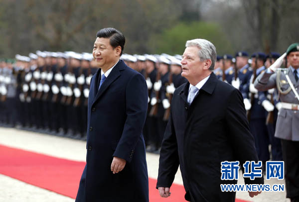 ????3月28日,國家主席習(xí)近平在柏林會見德國總統(tǒng)高克。會見開始前,高克在總統(tǒng)府為習(xí)近平舉行歡迎儀式。 新華社記者 鞠鵬 攝