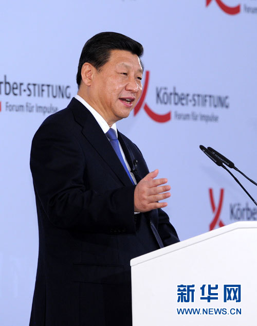 ????新華網(wǎng)柏林3月28日電(記者 班瑋 徐劍梅 何夢舒)當(dāng)?shù)貢r(shí)間3月28日下午,國家主席習(xí)近平應(yīng)德國科爾伯基金會邀請,在柏林發(fā)表重要演講,闡述中國和平發(fā)展道路和獨(dú)立自主的和平外交政策,強(qiáng)調(diào)中國走和平發(fā)展道路是中華民族熱愛和平的文化傳統(tǒng)的繼承和發(fā)揚(yáng),是中國人民從自身經(jīng)歷中形成的自覺選擇,是思想自信和實(shí)踐自覺的有機(jī)統(tǒng)一。中國將堅(jiān)定不移走和平發(fā)展道路,也真誠希望世界各國都走和平發(fā)展道路。