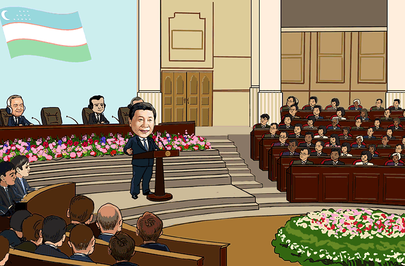 6月22日,正在烏茲別克斯坦訪問的國家主席習(xí)近平在塔什干烏茲別克斯坦最高會議立法院發(fā)表題為《攜手共創(chuàng)絲綢之路新輝煌》的重要演講,提出構(gòu)建互利合作網(wǎng)絡(luò)、共創(chuàng)新型合作模式、打造多元合作平臺、推進重點領(lǐng)域項目的新主張,為推動“一帶一路”向更高水平、更廣空間邁進指明了方向。當(dāng)天,習(xí)主席和卡里莫夫總統(tǒng)在塔什干共同出席“安格連-帕普”鐵路隧道的通車視頻連線活動。