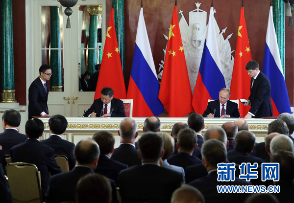 7月4日,國(guó)家主席習(xí)近平在莫斯科克里姆林宮同俄羅斯總統(tǒng)普京舉行會(huì)談。會(huì)談后,兩國(guó)元首簽署了《中華人民共和國(guó)和俄羅斯聯(lián)邦關(guān)于進(jìn)一步深化全面戰(zhàn)略協(xié)作伙伴關(guān)系的聯(lián)合聲明》《中華人民共和國(guó)和俄羅斯聯(lián)邦關(guān)于當(dāng)前世界形勢(shì)和重大國(guó)際問題的聯(lián)合聲明》,批準(zhǔn)了《〈中華人民共和國(guó)和俄羅斯聯(lián)邦睦鄰友好合作條約〉實(shí)施綱要(2017年至2020年)》并見證了《中華人民共和國(guó)外交部和俄羅斯聯(lián)邦外交部關(guān)于朝鮮半島問題的聯(lián)合聲明》以及經(jīng)貿(mào)、農(nóng)業(yè)、能源、基礎(chǔ)設(shè)施建設(shè)、金融、文化、創(chuàng)新、媒體、信息網(wǎng)絡(luò)、檢驗(yàn)檢疫等領(lǐng)域多項(xiàng)雙邊合作文件的交換。新華社記者 謝環(huán)馳 攝