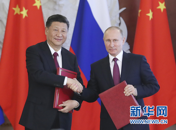 7月4日,國(guó)家主席習(xí)近平在莫斯科克里姆林宮同俄羅斯總統(tǒng)普京舉行會(huì)談。會(huì)談后,兩國(guó)元首簽署了《中華人民共和國(guó)和俄羅斯聯(lián)邦關(guān)于進(jìn)一步深化全面戰(zhàn)略協(xié)作伙伴關(guān)系的聯(lián)合聲明》《中華人民共和國(guó)和俄羅斯聯(lián)邦關(guān)于當(dāng)前世界形勢(shì)和重大國(guó)際問題的聯(lián)合聲明》,批準(zhǔn)了《〈中華人民共和國(guó)和俄羅斯聯(lián)邦睦鄰友好合作條約〉實(shí)施綱要(2017年至2020年)》并見證了《中華人民共和國(guó)外交部和俄羅斯聯(lián)邦外交部關(guān)于朝鮮半島問題的聯(lián)合聲明》以及經(jīng)貿(mào)、農(nóng)業(yè)、能源、基礎(chǔ)設(shè)施建設(shè)、金融、文化、創(chuàng)新、媒體、信息網(wǎng)絡(luò)、檢驗(yàn)檢疫等領(lǐng)域多項(xiàng)雙邊合作文件的交換。新華社記者 劉衛(wèi)兵 攝