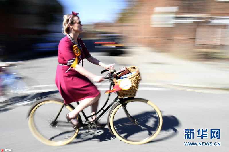 滿滿穿越感!倫敦舉行復(fù)古騎行活動