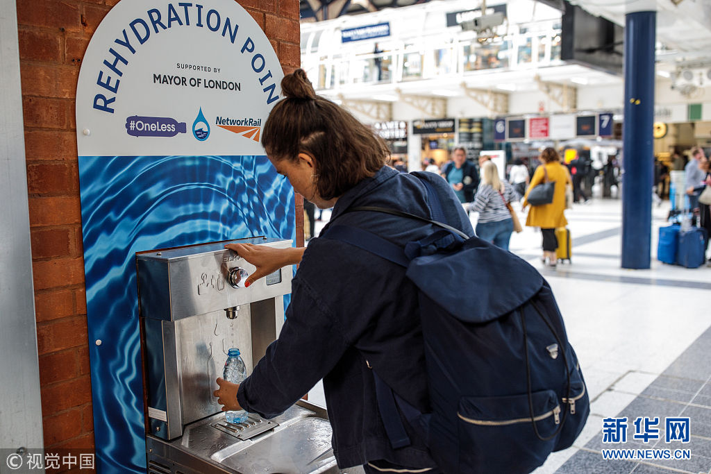 當?shù)貢r間2018年8月28日,英國倫敦,民眾在公共飲水機旁飲水。倫敦市長近日引進了20個新的公共飲水機,鼓勵人們自帶杯子取水喝,從而減少塑料垃圾。 (圖片來源:視覺中國)