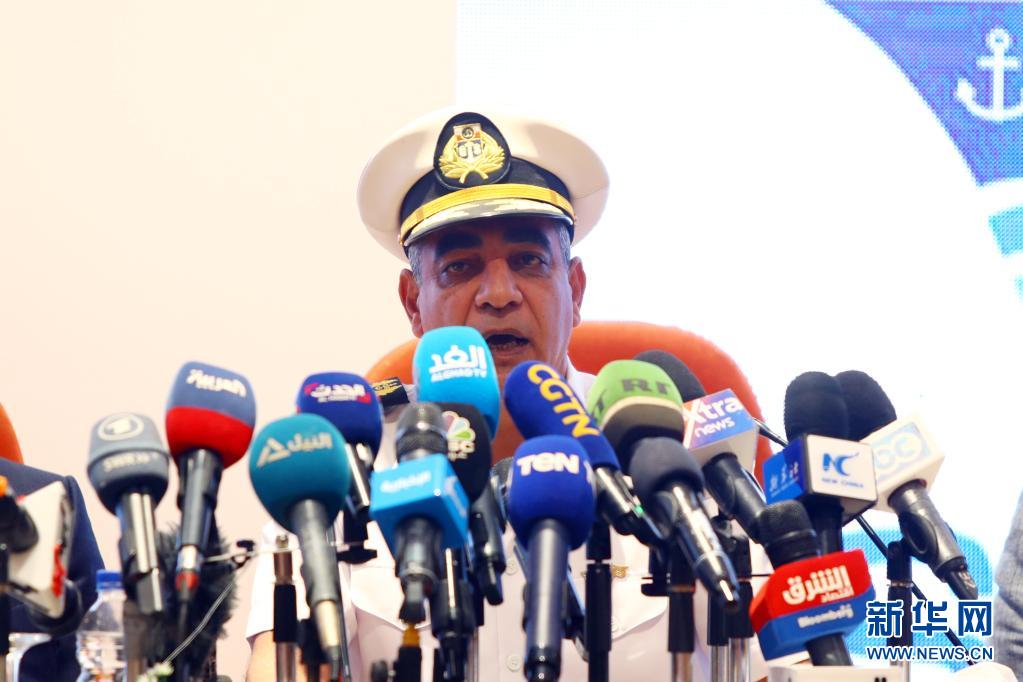 5月30日,在埃及東北部城市伊斯梅利亞,蘇伊士運河管理局調查組負責人賽義德·舒愛沙在“長賜”號貨輪擱淺事故調查結果新聞發(fā)布會上講話。